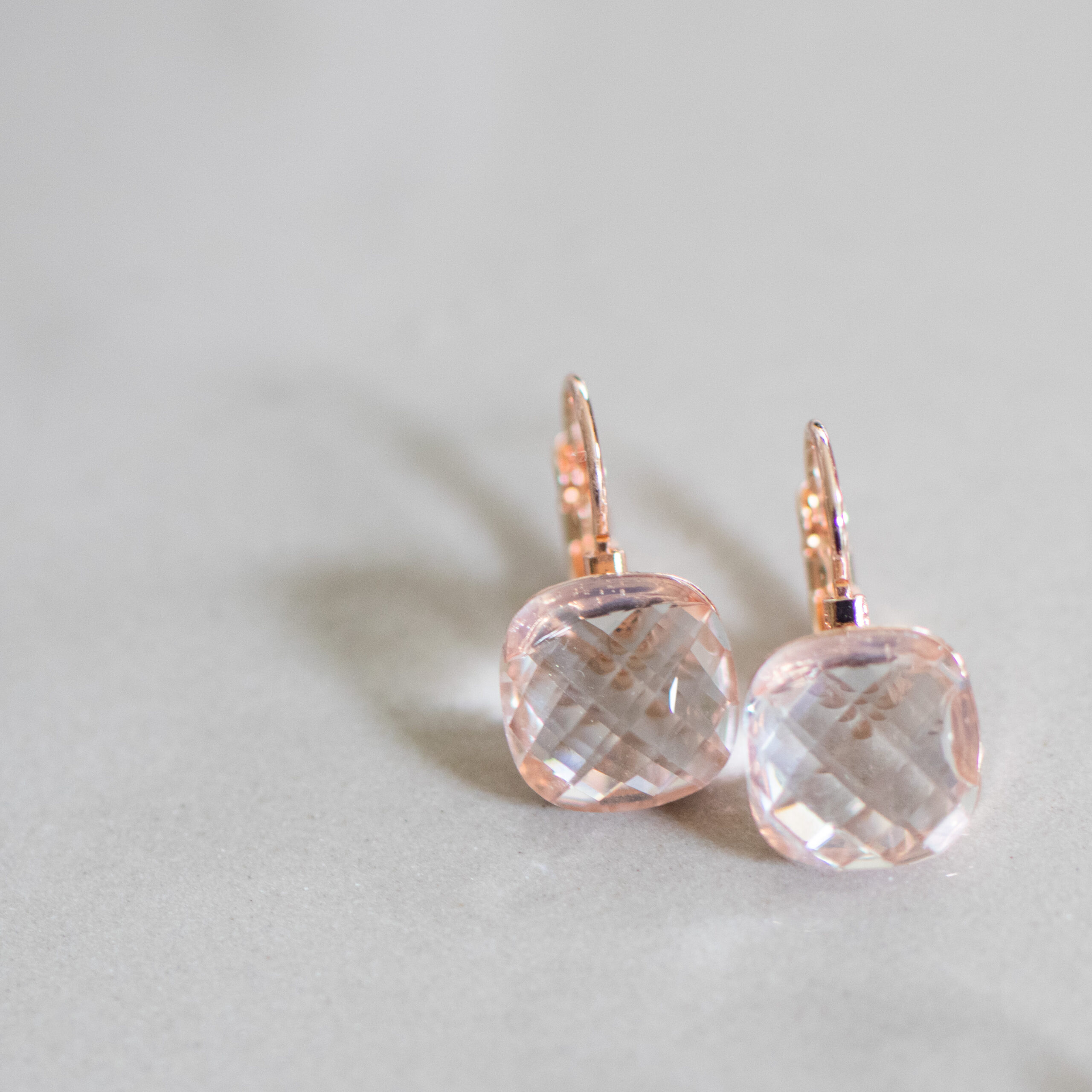 Cushion cut drop earrings -faceted cushion cut drop earrings set in sleek