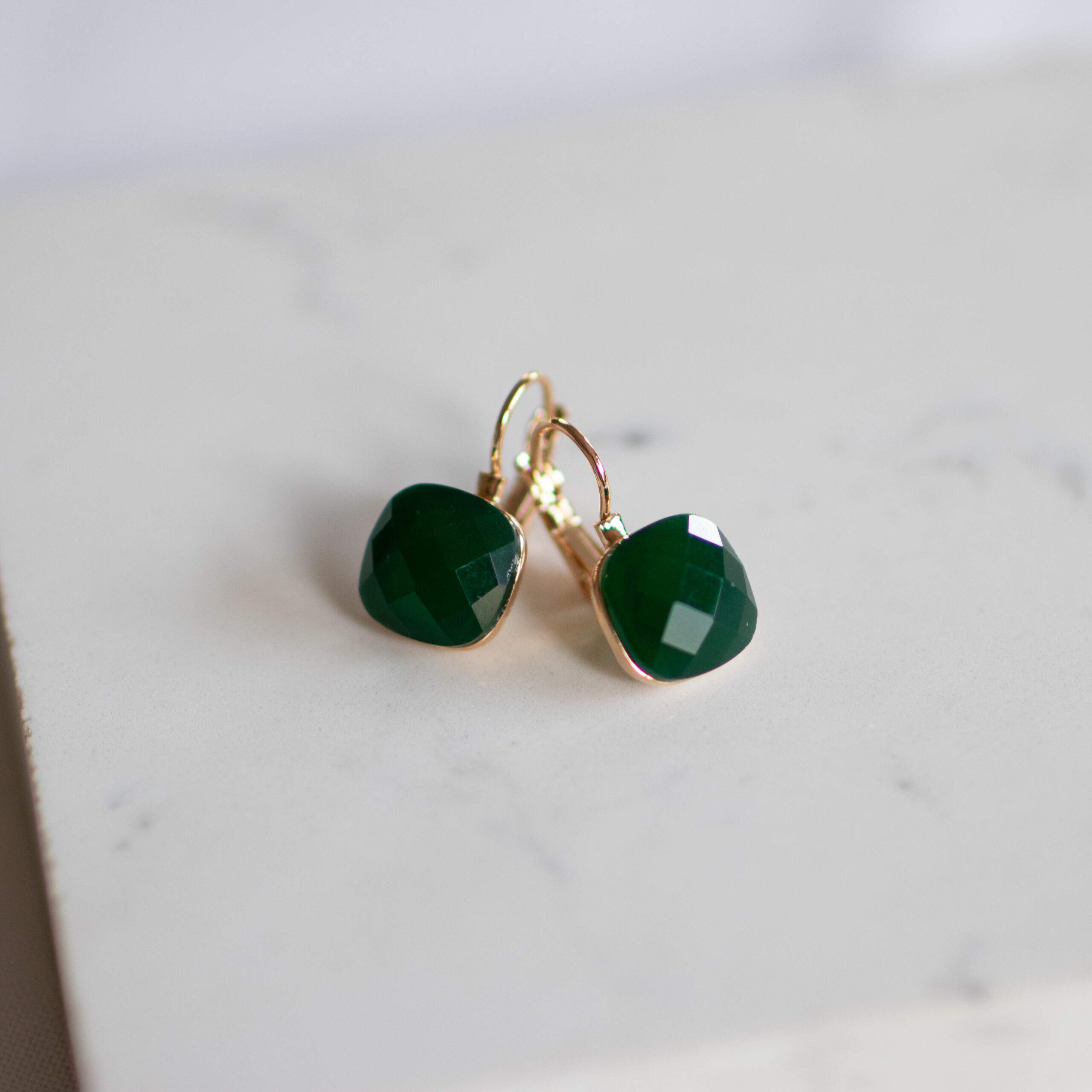 Cushion cut drop earrings -faceted cushion cut drop earrings set in sleek